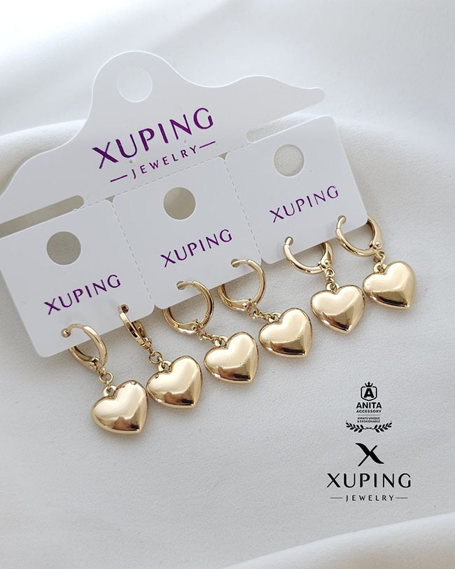 گوشواره دخترانه زنانه،رنگ ثابت،کاملا مشابه طلا،صدرصد ضد حساسیت،مجلسی و خاص،مدل قلب،برند معتبر ژوپینگ