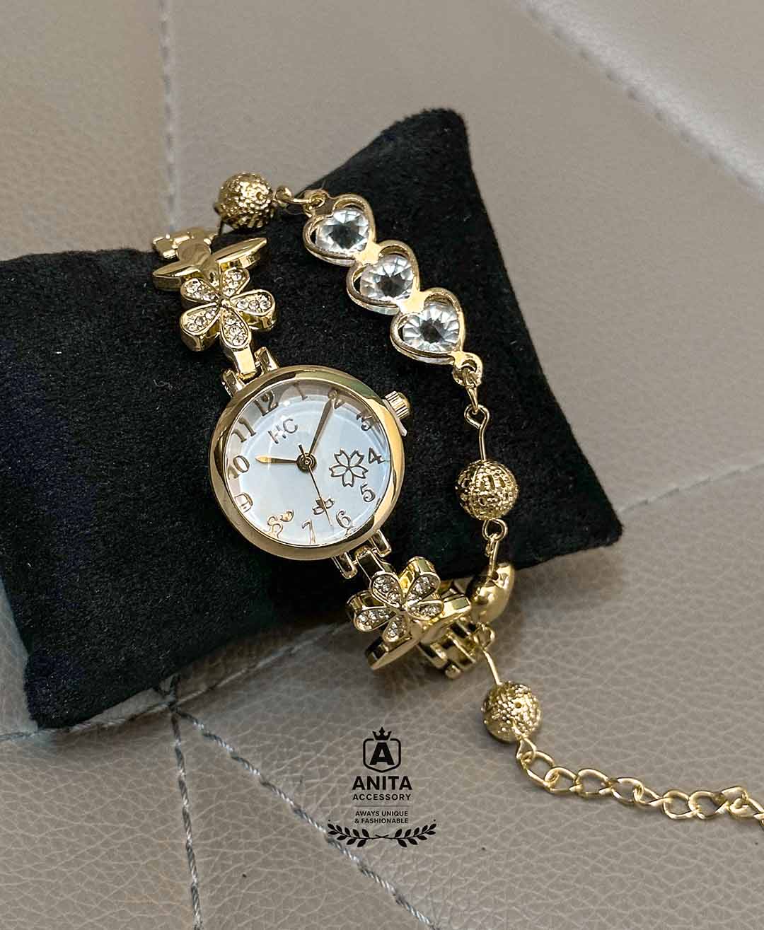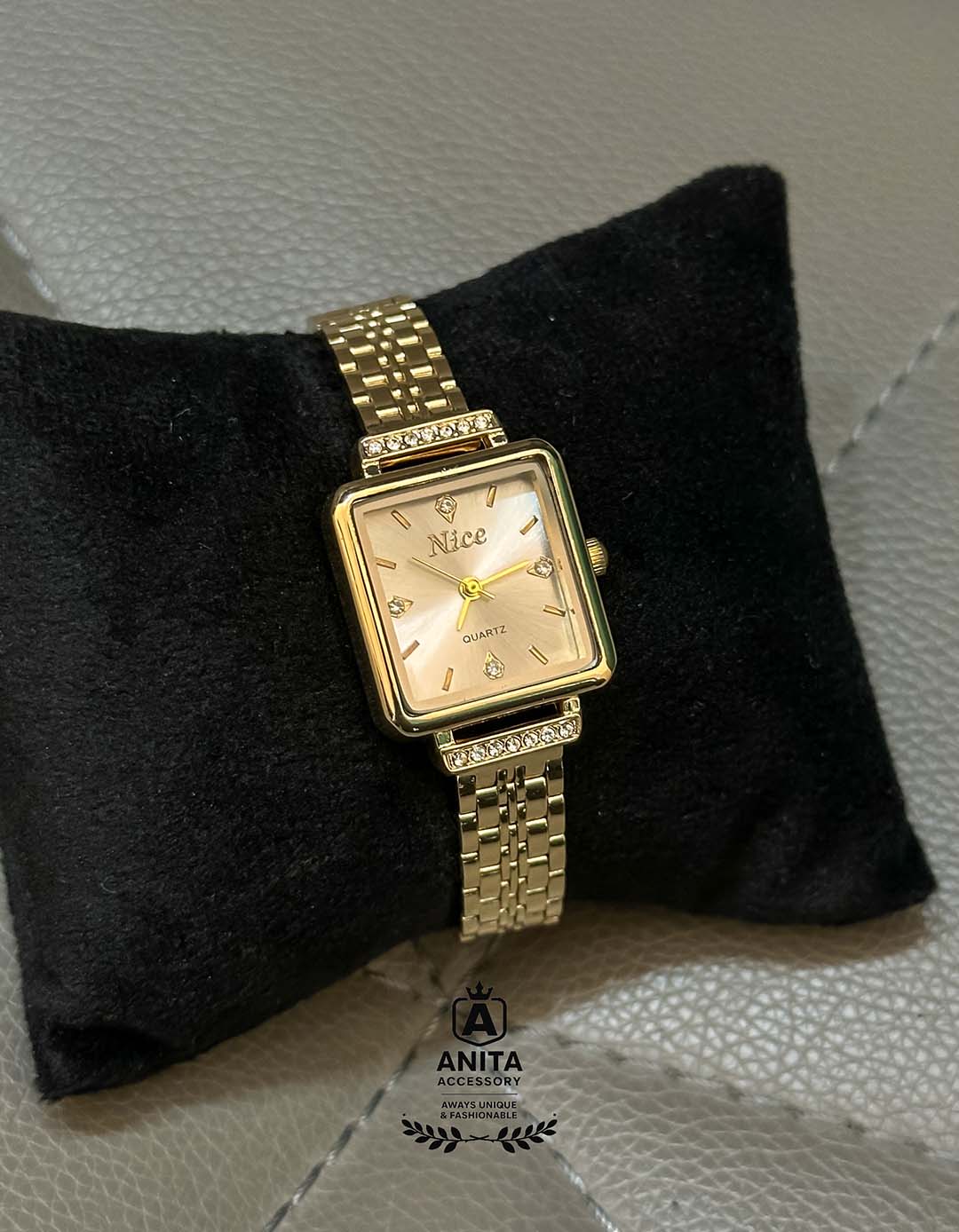 ساعت مچی زنانه نگین دار رولکس صفحه کهربایی