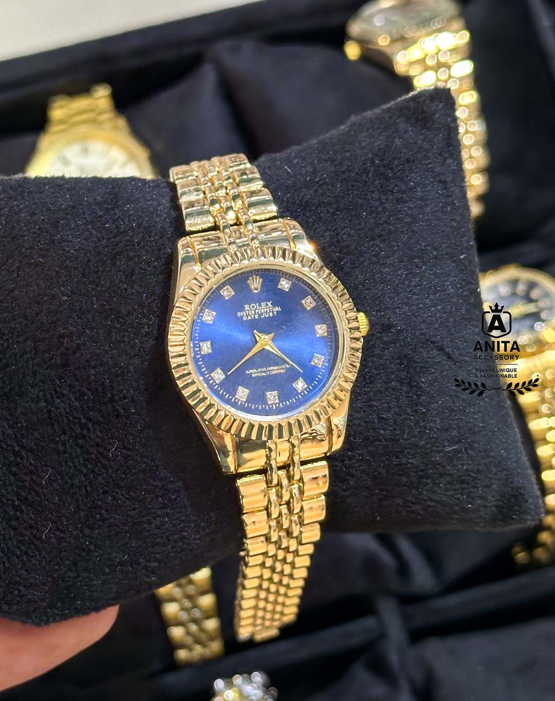 ساعت مچی زنانه رولکس زمینه آبی تیره