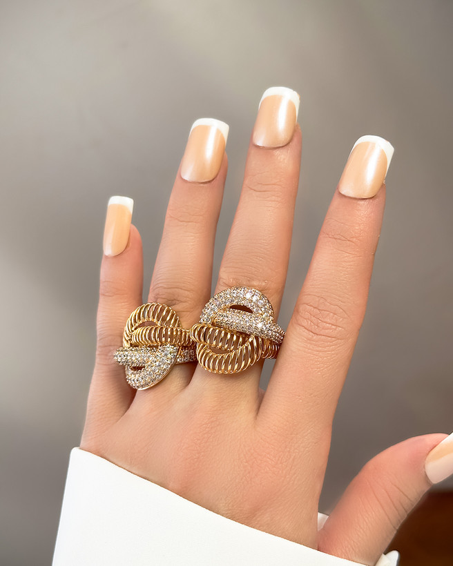- مناسب برای استایل ماکسیمال: ترکیب با انگشترهای ساده یا فلزات دیگر (طلایی، نقره، رزگلد)