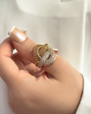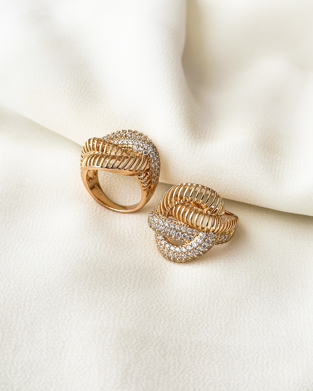 این انگشتر شیک از برند معتبر زوپینگه ساخته شده با آلیاژ ضدزنگ، رنگ ثابت و ضد حساسیت. طراحی منحصربهفرد گره طنابی همراه با نگینهای درخشان، جلوهای لوکس و خاص به دست شما میدهد.