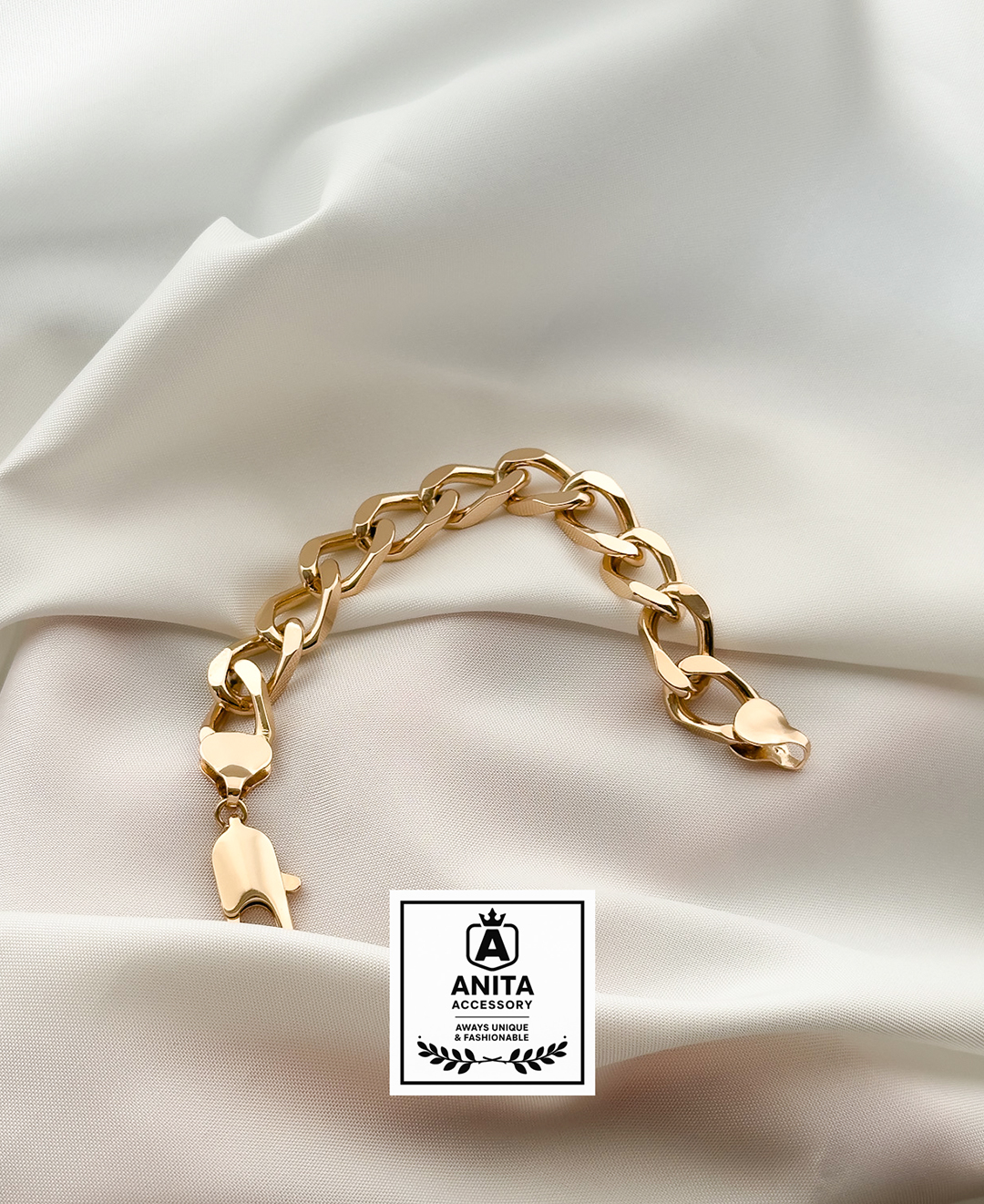 زنجیر پهن و براق آن جلوهای مدرن و جسورانه به استایل شما میدهد و به راحتی با انواع پوششها ست میشود.