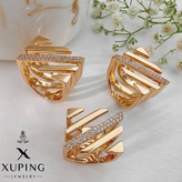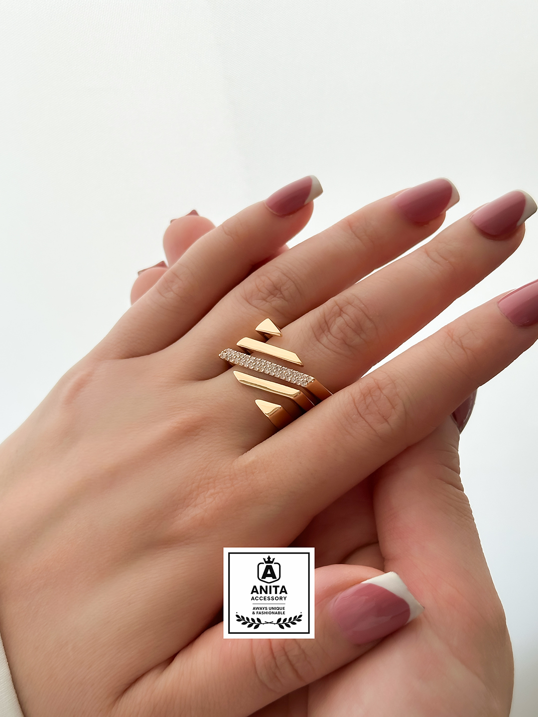 انگشتر ژوپینگ مدل مربعی هاشوری، روکش طلای ۱۸ عیار با نگینهای درخشان زیرکونیا. طراحی خاص و مدرن، مناسب استایلهای شیک روزانه و مهمانی. ضد حساسیت و با رنگ ثابت.