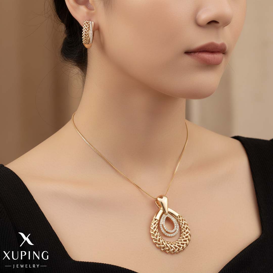 نیم ست طرح طلای زنانه،رنگ ثابت،ضد حساسیت،نگین مخراجکاری،آبکاری طلا،مدل فیوژن نگین،برند مطرح ژوپینگ