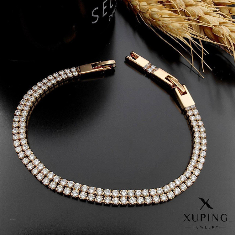 دستبند تنیسی طلایی دو طرفه با قابلیت کوچک شدن آسان و نگین بدون ریزش
