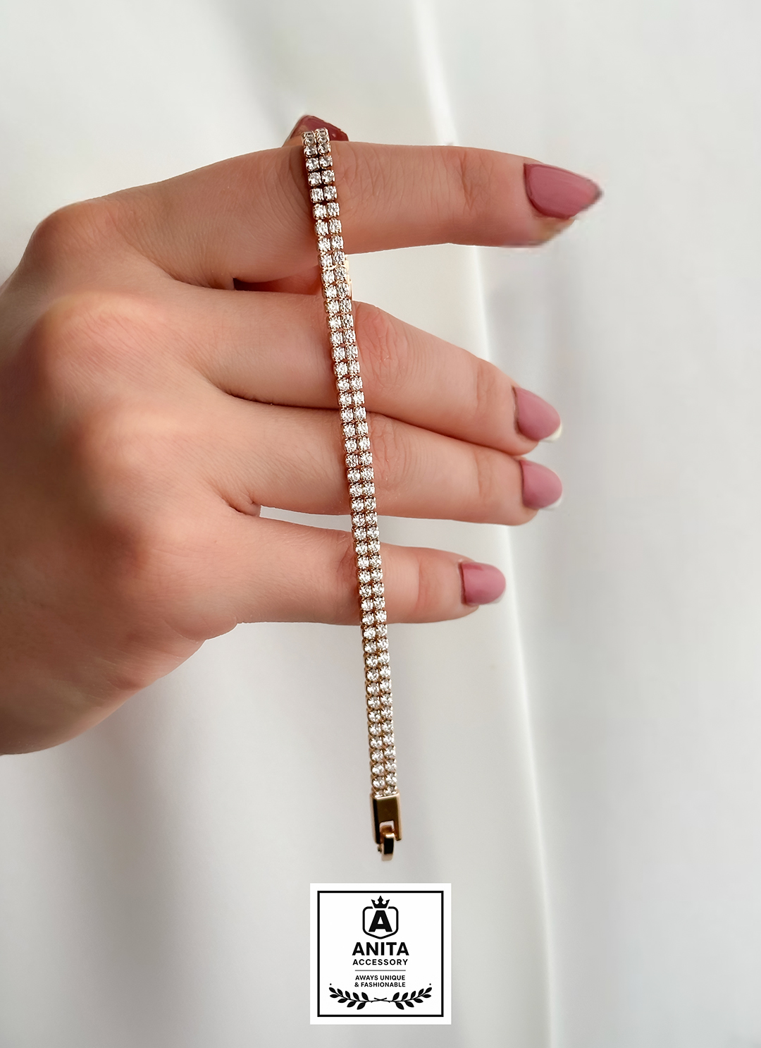 ✨ این دستبند تنیسی فوقالعاده ظریف و درخشان، با طراحی لوکس و استفاده از طلای مرغوب و نگینهای برش دقیق و کاملاً ثابت (بدون ریزش)، انتخابی ایدهآل برای استایل روزانه و مهمانیهای خاص است.