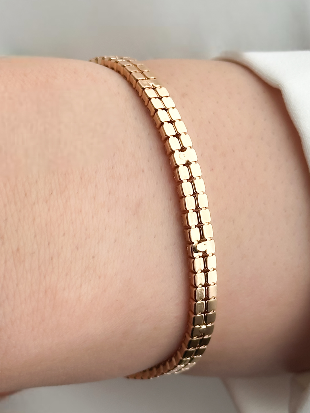 دستبند تنیسی طلایی دو طرفه با قابلیت کوچک شدن آسان و نگین بدون ریزش