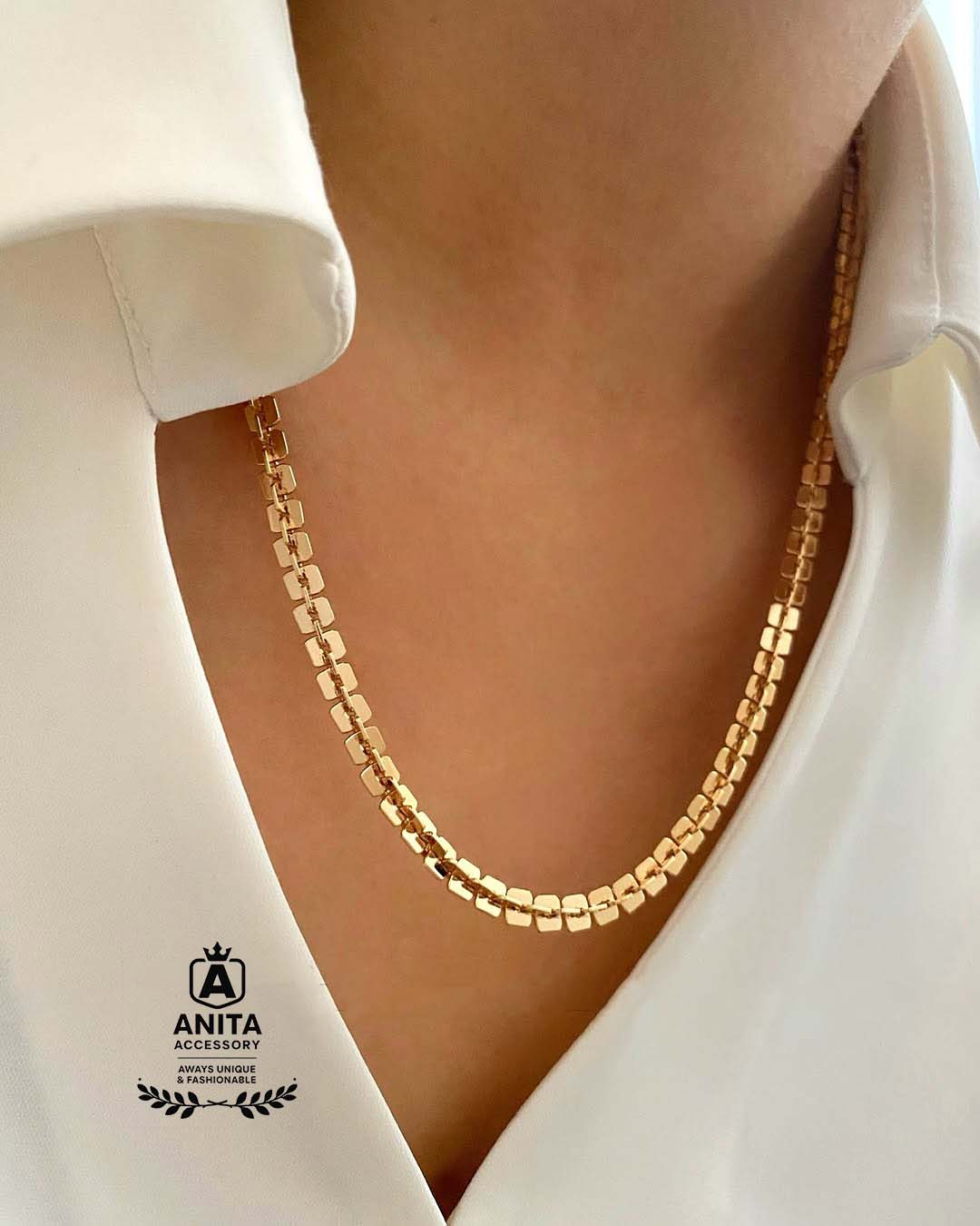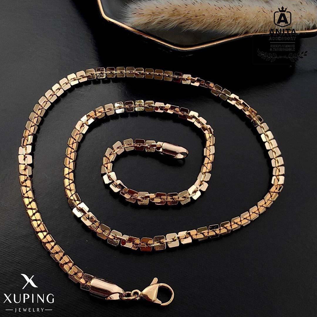 زنجیر طرح طلا زنانه،رنگ ثابت،ضد حساسیت،مشابه طلا،مدل پولکی حصیری،شیک و مجلسی،بسیار پر فروش،برند مطرح ژوپینگ