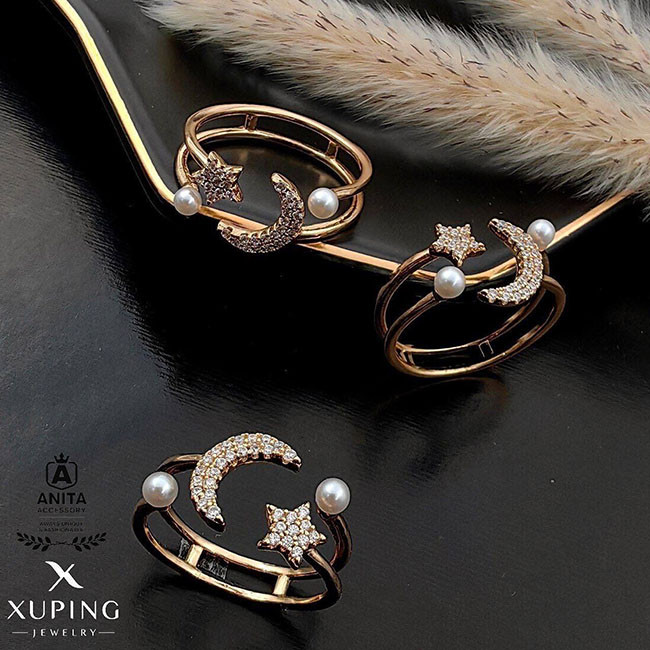 انگشتر ماه و ستاره دخترانه ژوپینگ،مدل مینیمال،نگین مخراجکاری،رنگ ثابت،ضد حساسیت،برند معتبر ژوپینگ