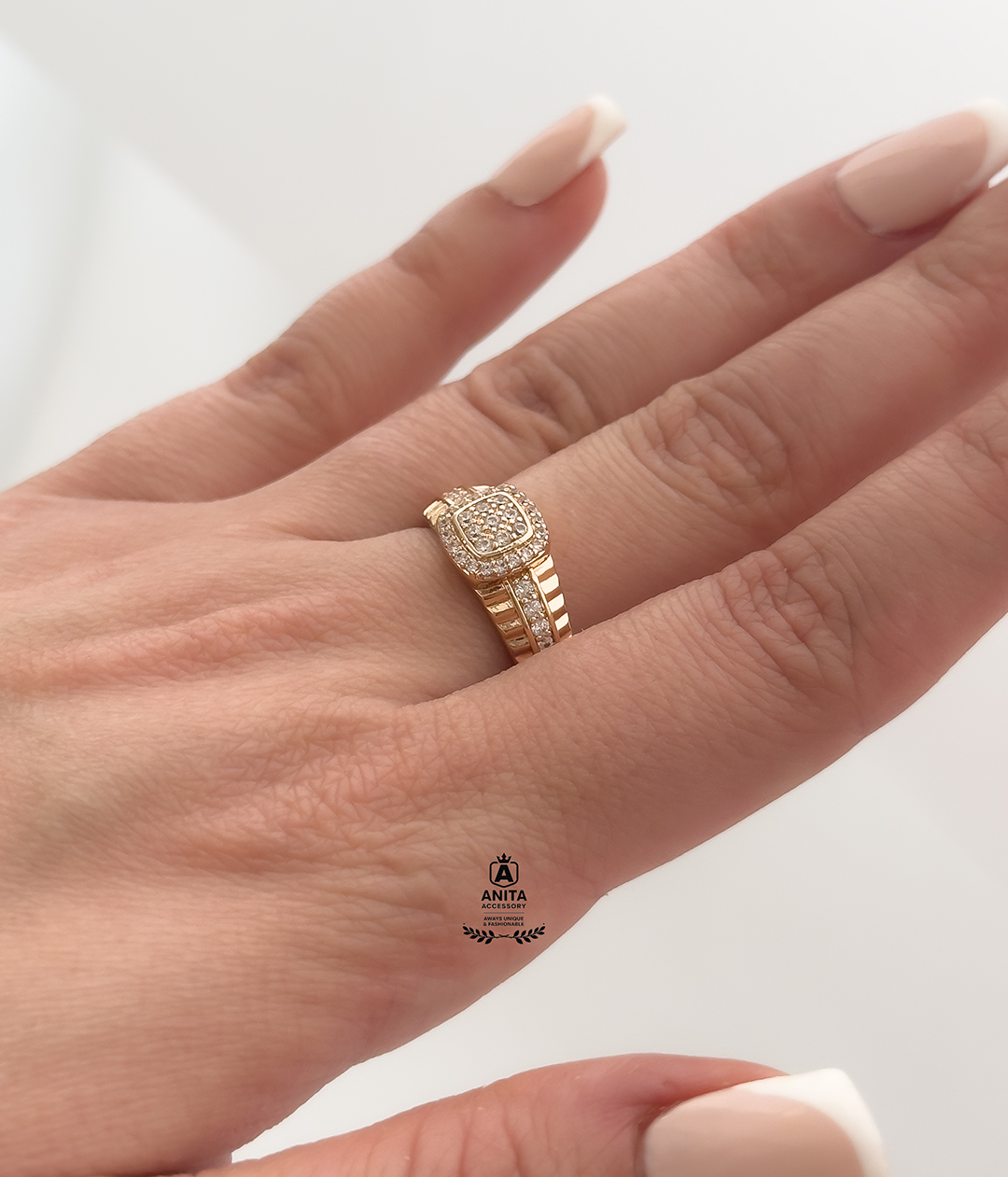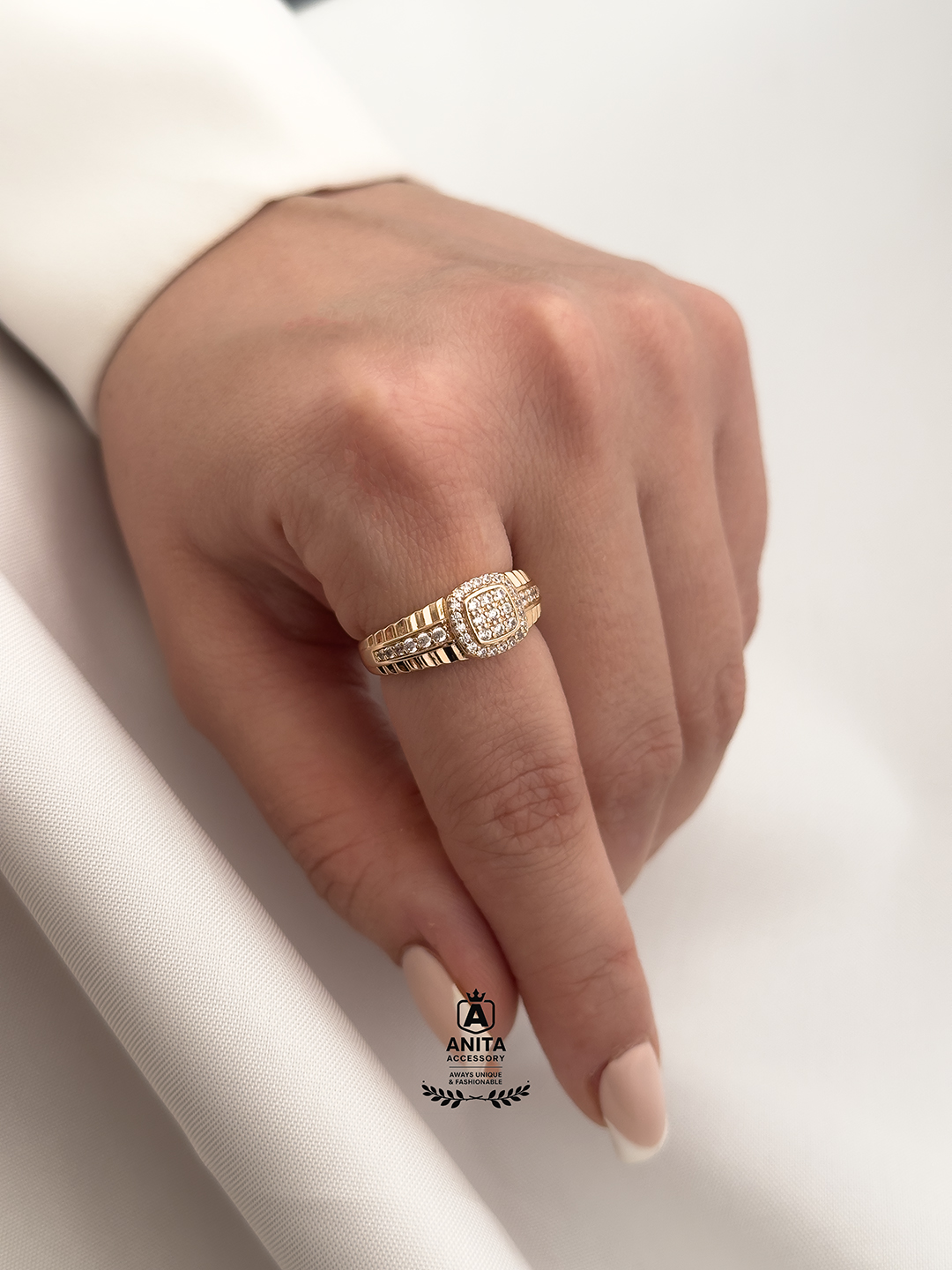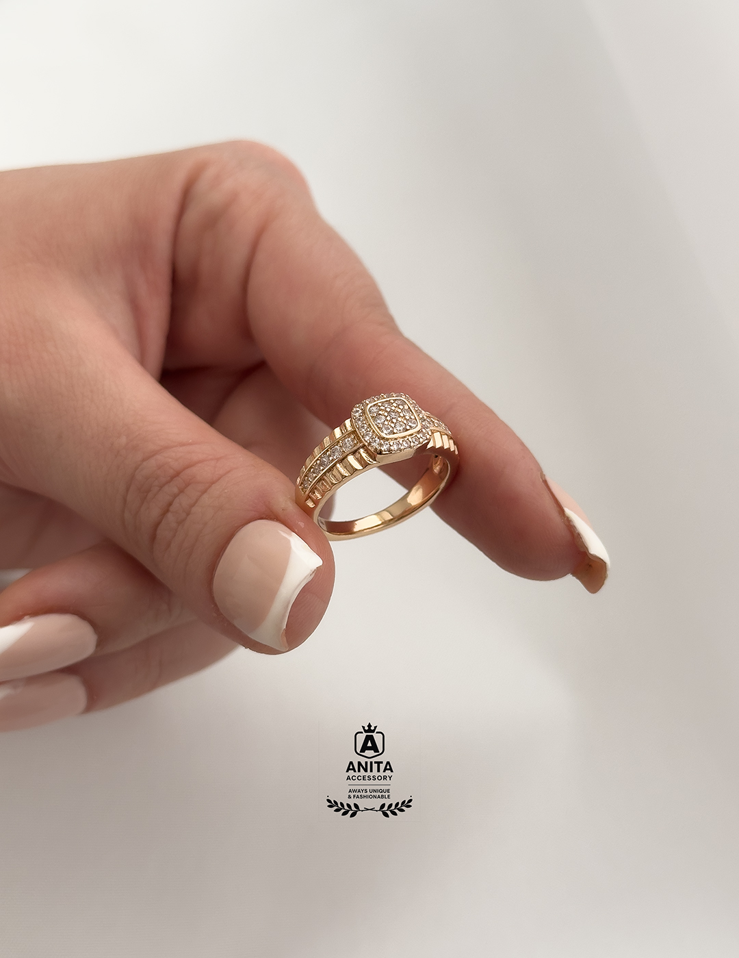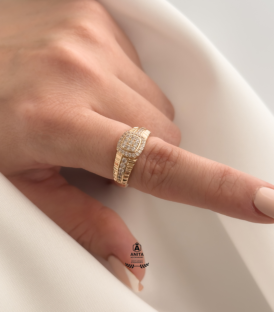 این انگشتر با طراحی دیپلمات، نمادی از استایل رسمی، وقار و سلیقه بینقص شماست. ساختار بدنه با بهرهگیری از آبکاری ژوپینگ (Xuping)، تضمینکننده سطحی براق و ماندگار است که درخشندگی نگینهای سوار شده را به بهترین شکل بازتاب میدهد. این محصول، انتخابی ایدهآل برای تکمیل استایلهای کاری و مجالس رسمی شماست.