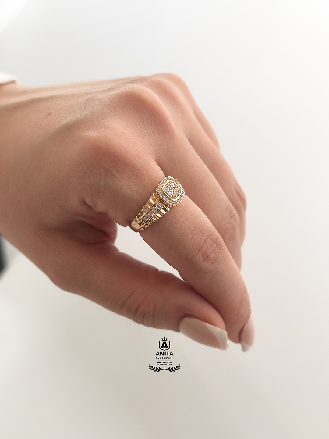 انگشتر طرح دیپلمات - نگیندار ژوپینگ 18K