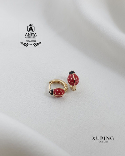 گوشواره کفشدوزک ژوپینگ دخترانه بچگانه،رنگ ثابت،مشابه طلا،ضد حساسیت،برند معتبر ژوپینگ