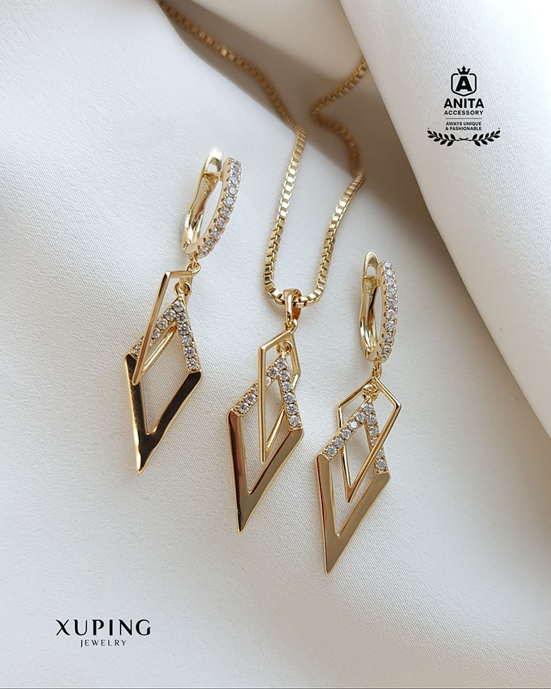 ناموجودنیم ست دو لوزی آویز ژوپینگ،رنگ ثابت،طرح پرطرفدار،مشابه طلا،نگین مخراجکاری شده،ضد حساسیت،شیک و مجلسی،برند معتبر ژوپینگ